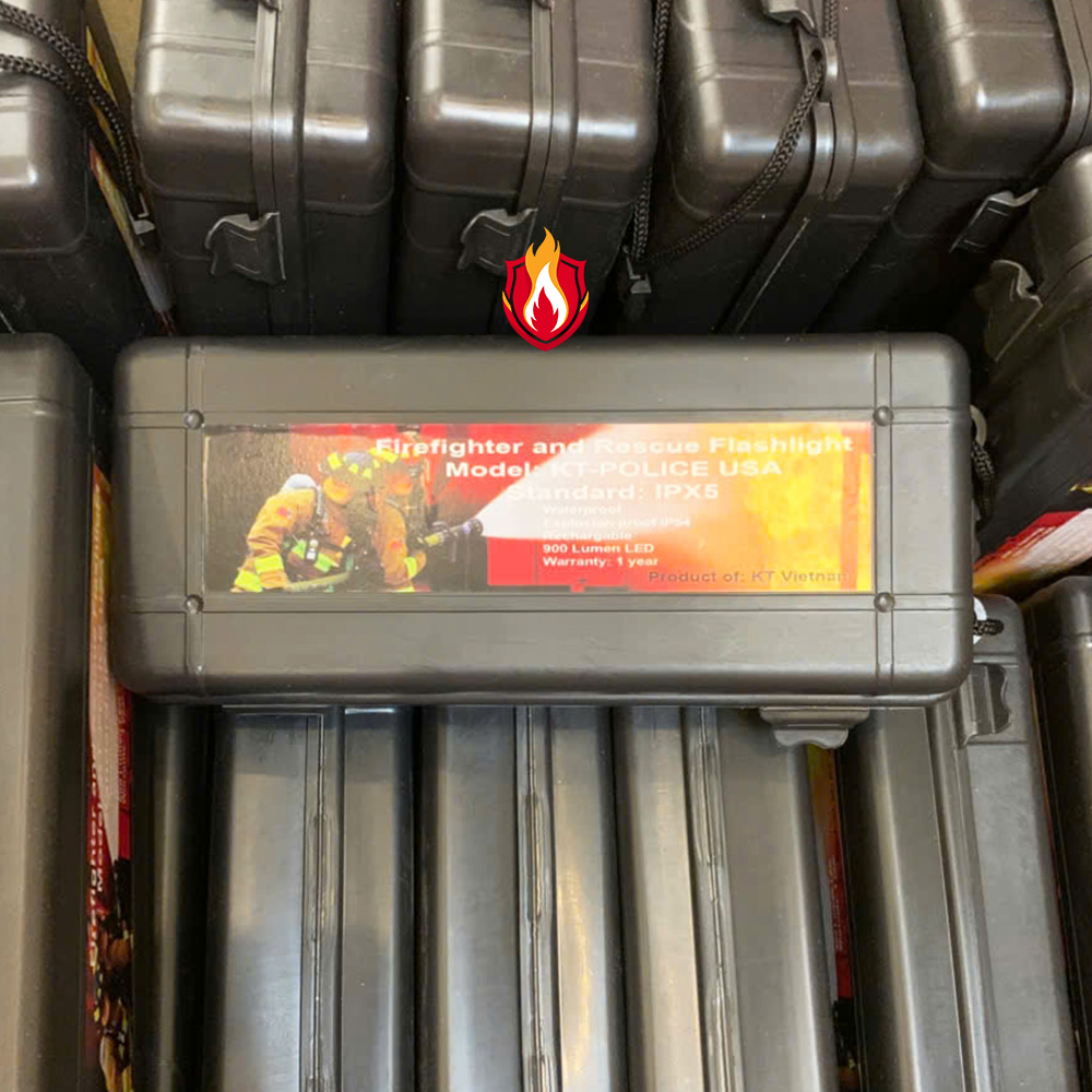 Đèn pin IPX5 ánh sáng vàng tiêu chuẩn PCCC, đèn pin chống nước chính hãng tiêu chuẩn IPX5 thể hiện trên thân đèn ánh sáng vàng chiếu xuyên khói.